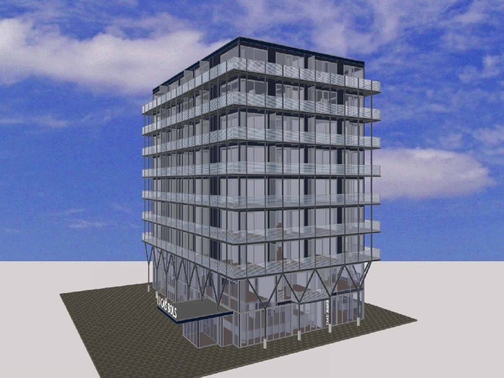 Het voormalige kantoorgebouw wordt binnen project Bolspark getransformeerd tot een modern wooncomplex met 98 studio-appartementen.