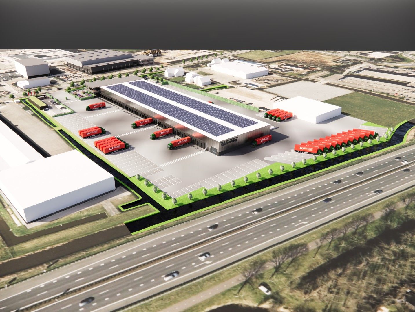 Het gebouw zal zowel, een aan de Rijksstraatweg gelegen kantoor als een grote overslaghal gaan omvatten.
