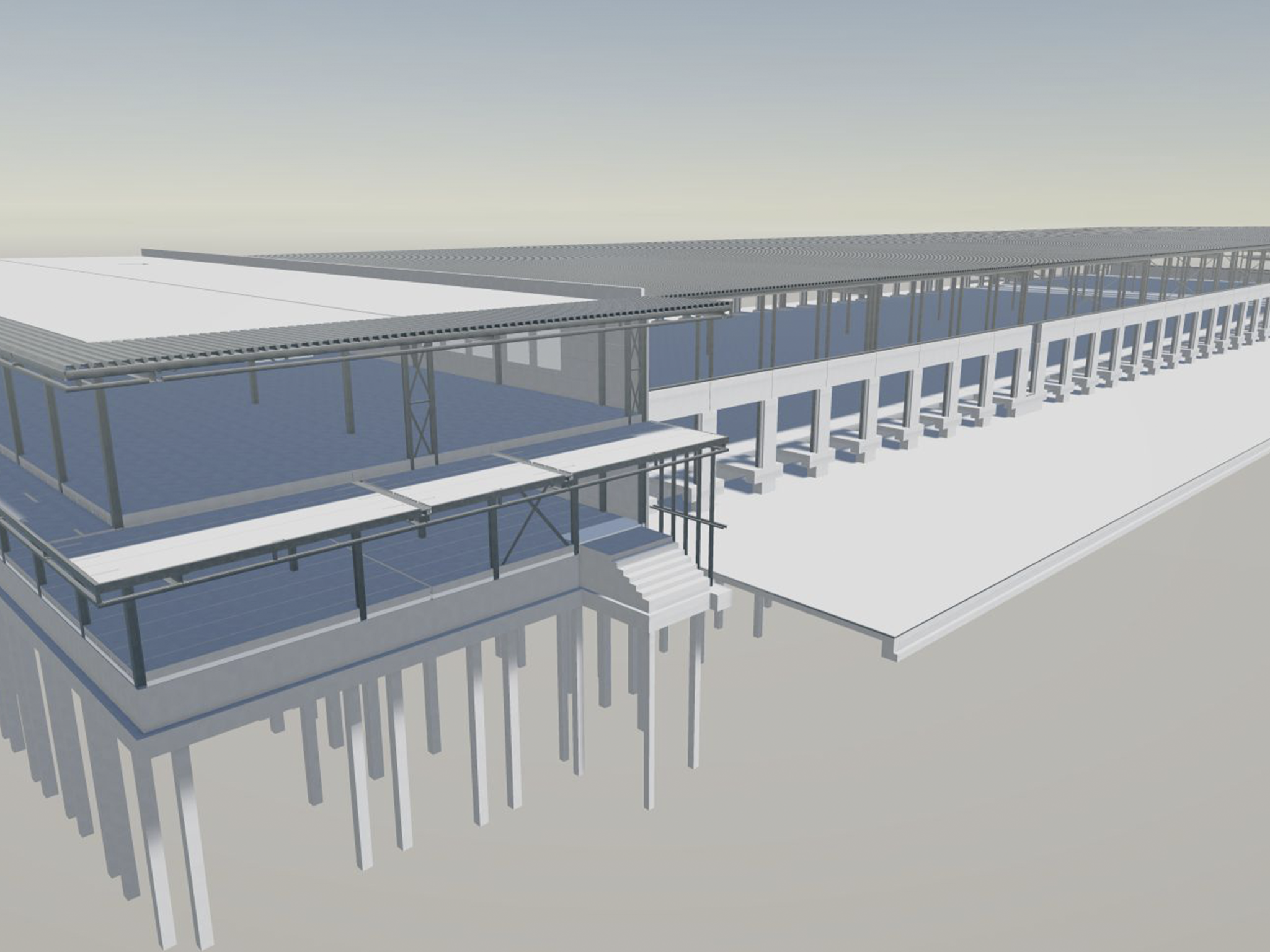 Zowel het kantoor als de hal wordt verhoogd aangelegd zodat er geen laadkuilen nodig zijn.